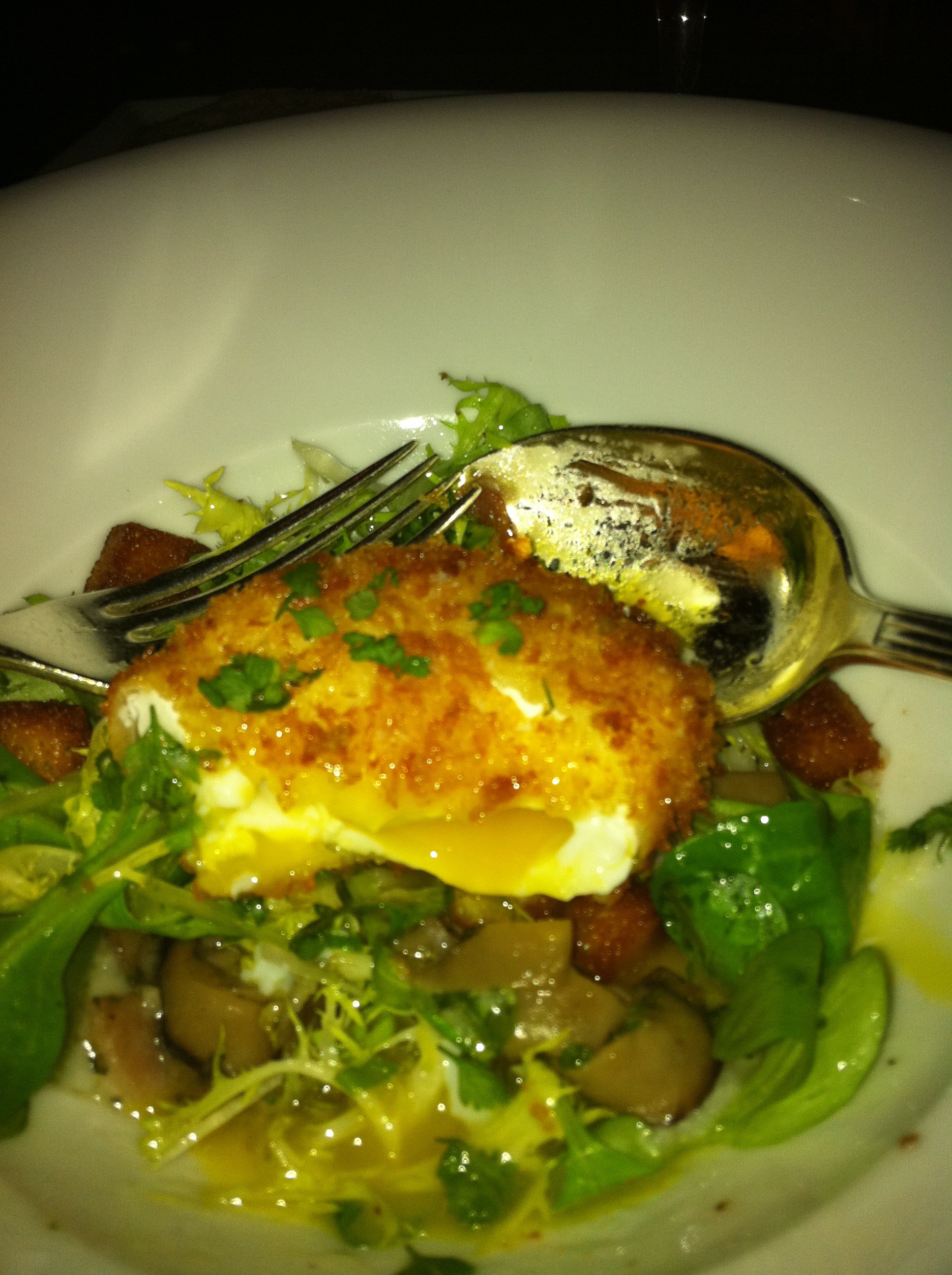 After the caviar service, I had the Crispy Farm Egg that was also on the set menu. This was truly amazing. It came lightly battered with a runny middle on the bed of goodness that you can see below:
