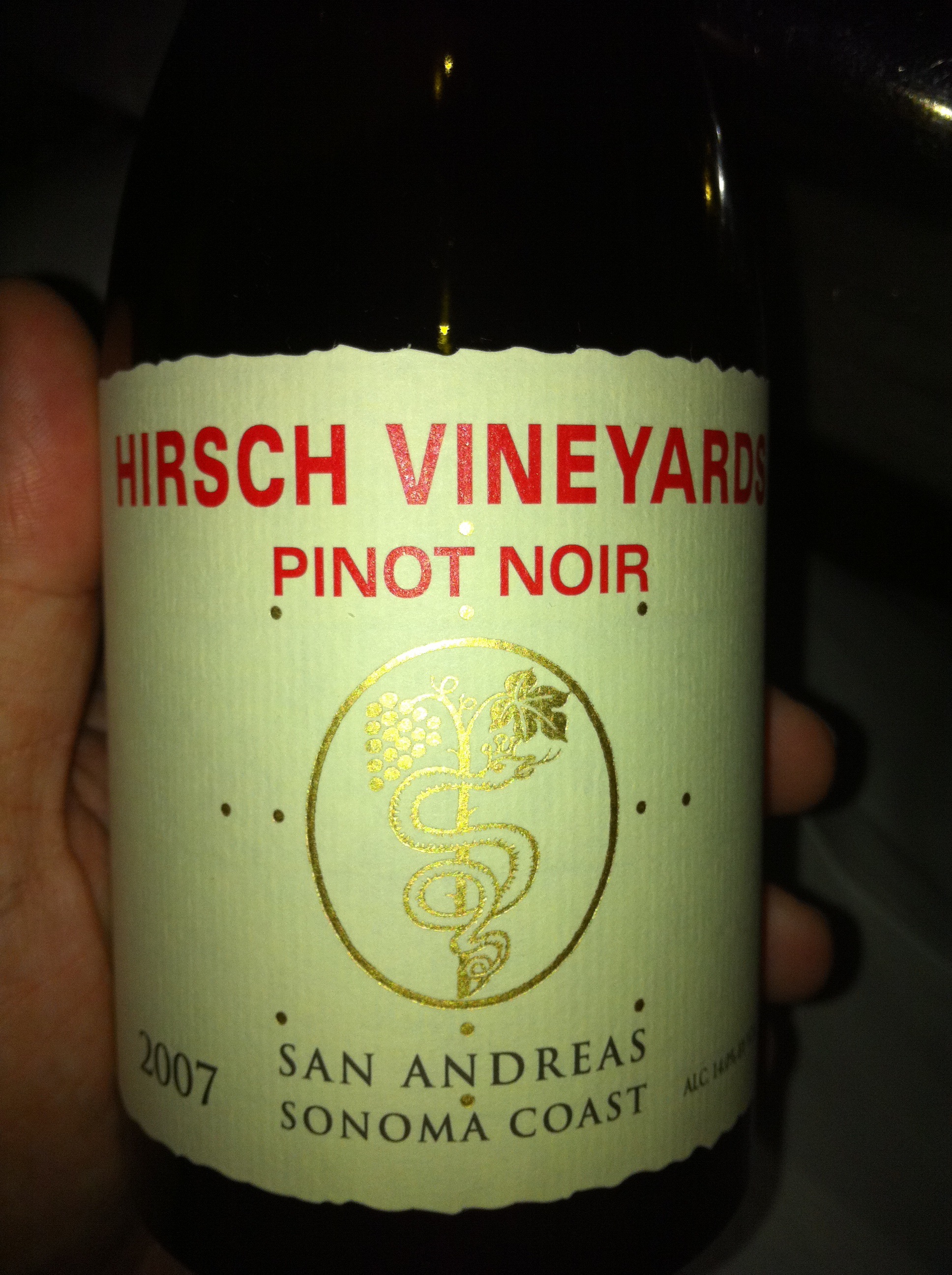 I can’t even describe my reaction to the egg. It was amazing. Great combination of textures and flavors. This was my favorite dish (regularly on the menu) at the end of the night. I should mention that we’ve moved from Champagne to some Pinot Noir. Hirsch Vineyards is the selection.