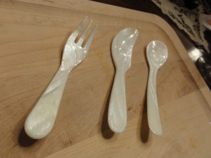 Mother of pearl comes from the inner shell layer of an oyster or mussel. Mother of pearl is pH balanced so won’t affect the acidity or flavor of the caviar. If mother of pearl isn’t available, then wood or bone spoons are preferred. Plastic is also preferred over metal. Another way to eat caviar, perhaps the purest way is to eat it is directly off your hand. But you will probably still need a utensil to get it from the jar to your hand.