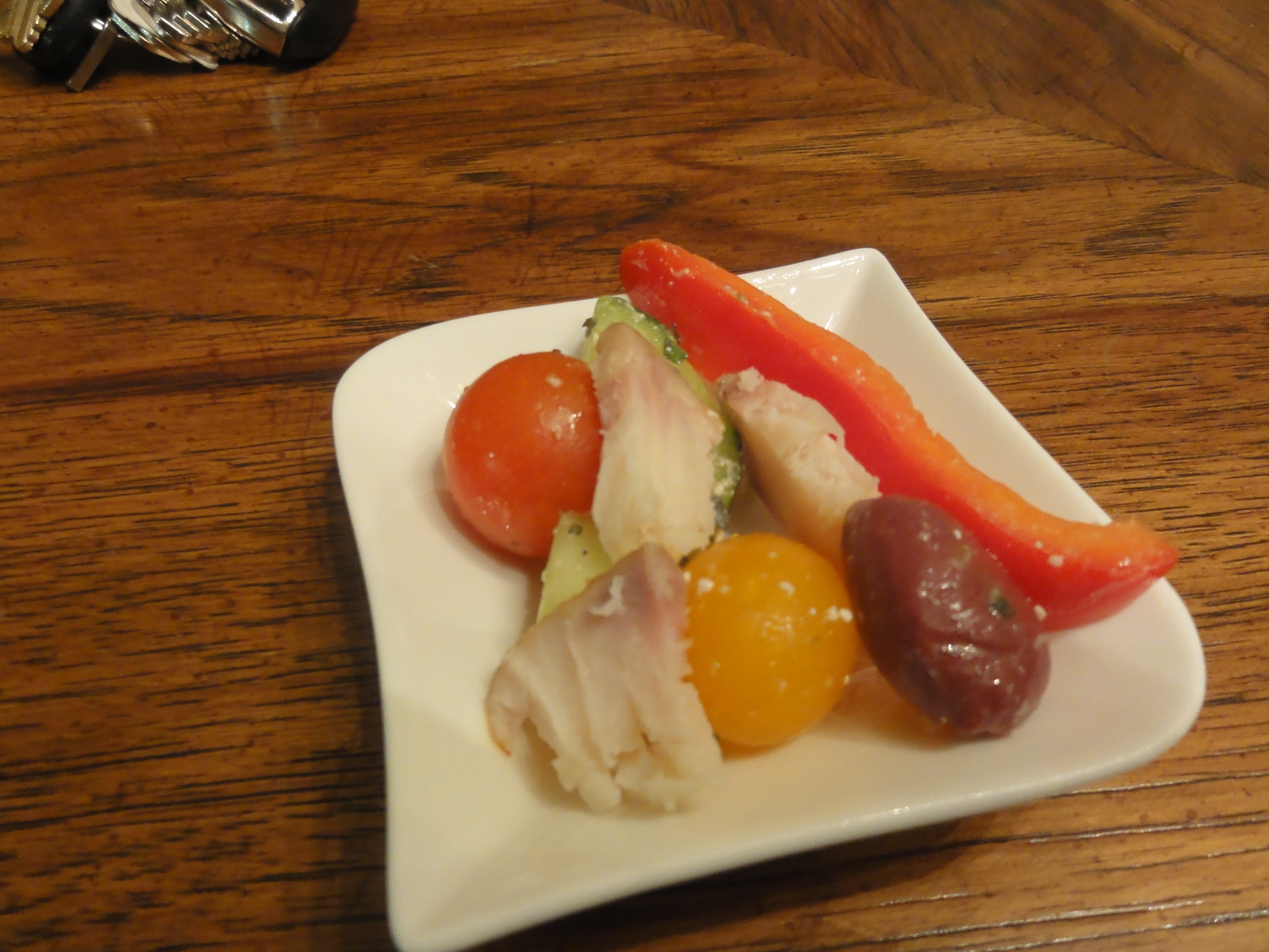 When I try the caviar with the smoked sturgeon, they really go well. It’s a little tough to get a bite with all the different components of the salad, but I’m able to get smoked sturgeon, caviar and the red pepper together into a bite. This is the combination that I enjoyed most of the night.