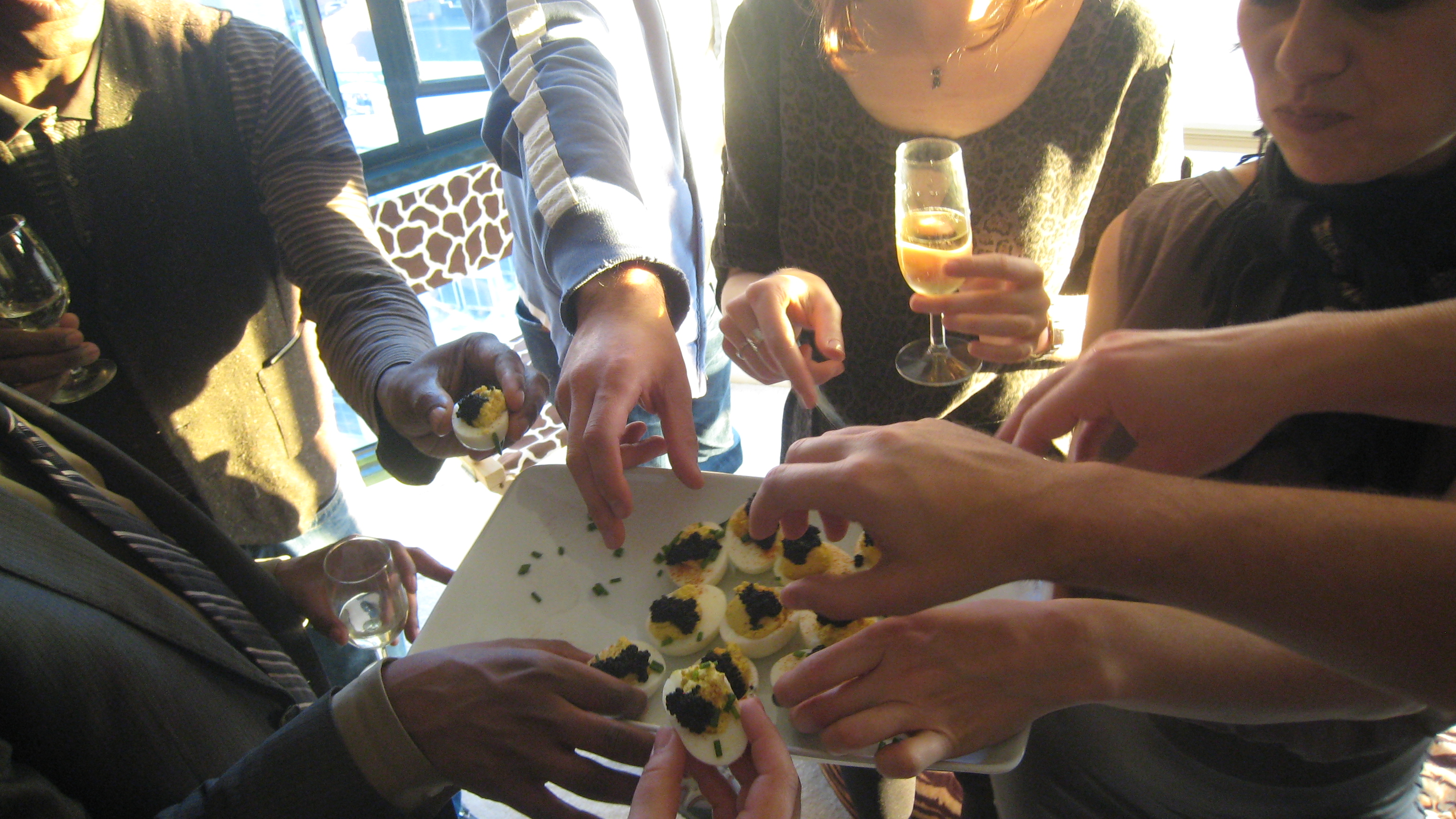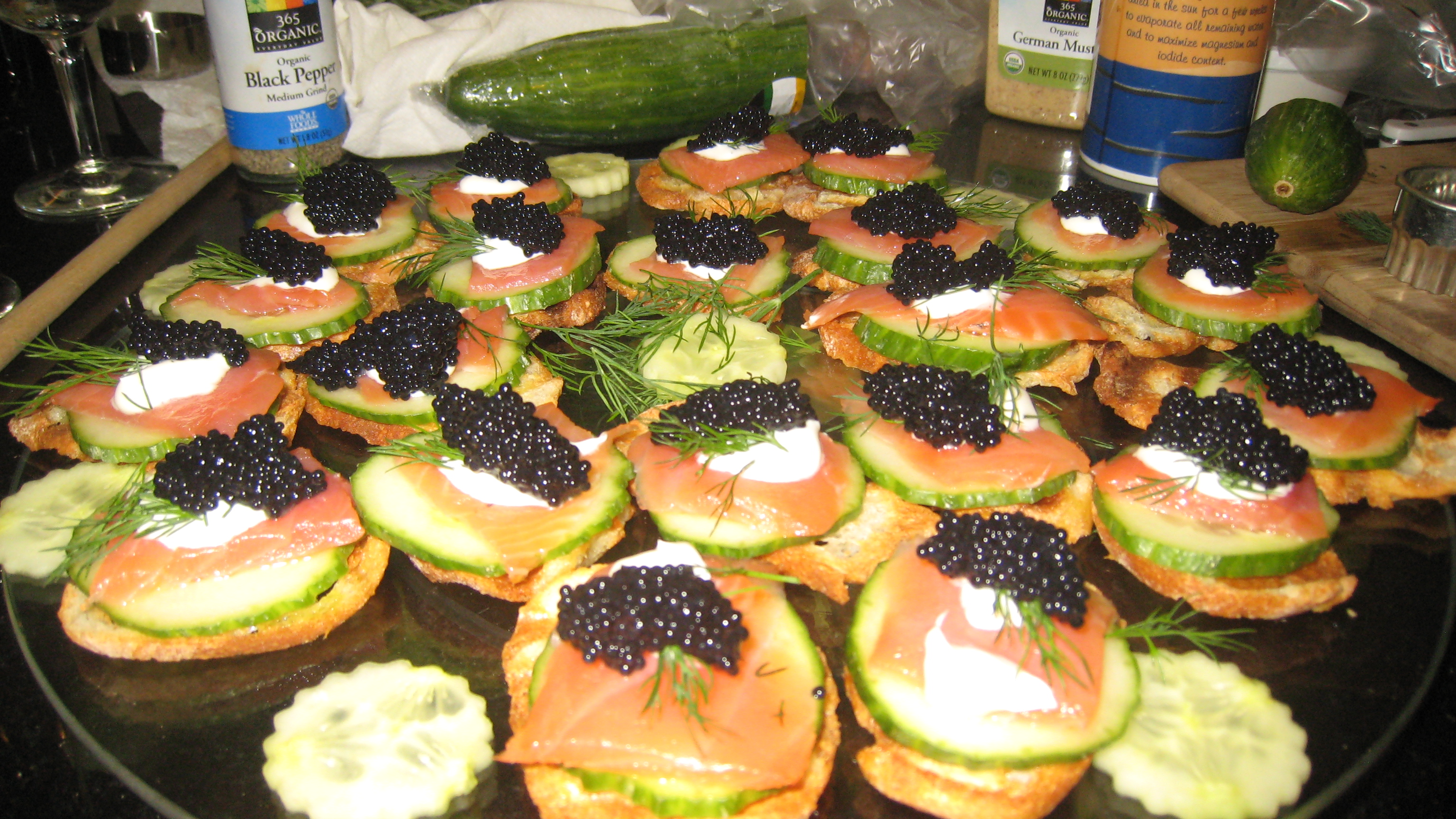 The setting was my lovely friend Asiya’s San Francisco apartment. The guests were an intimate and eclectic group of friends from all walks of life. The goal was to create an array of recipe ideas using a range of caviars and roes to appeal to a wide variety of food enthusiasts, from the frugal gourmand to the most indulgent.