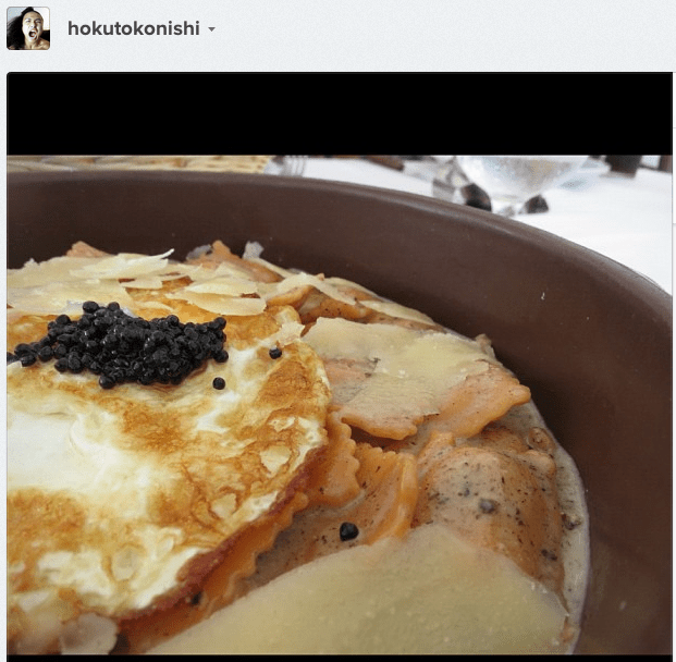 Instagram users are big fans of sharing what they refer to as “#foodporn”: great pics of sometimes over the top dishes. Instagram user ‘hokutokonishi’ shares one here of a meal in Spain that includes an Iberico ham ravioli with truffles and topped with caviar. Combining and all-time favorite of mine, Iberico ham, with Caviar will definitely get you into this blog. Click the image below to see the full conversation on the Instagram post.