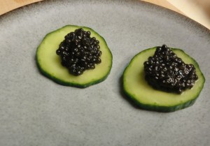 We also tried this off a sliced fresh cucumber which makes for a clean crisp bite. The texture of the cucumber compliments the White Sturgeon well and the flavor doesn’t overpower the roe.